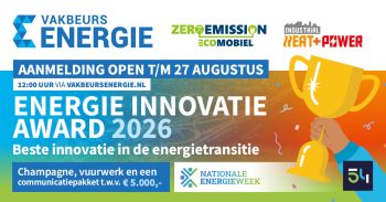 De feestelijke uitreiking vindt plaats op dinsdag 6 oktober 2026 om 11:30 uur op Podium Energie - tijdens Zero Emission | Ecomobiel.